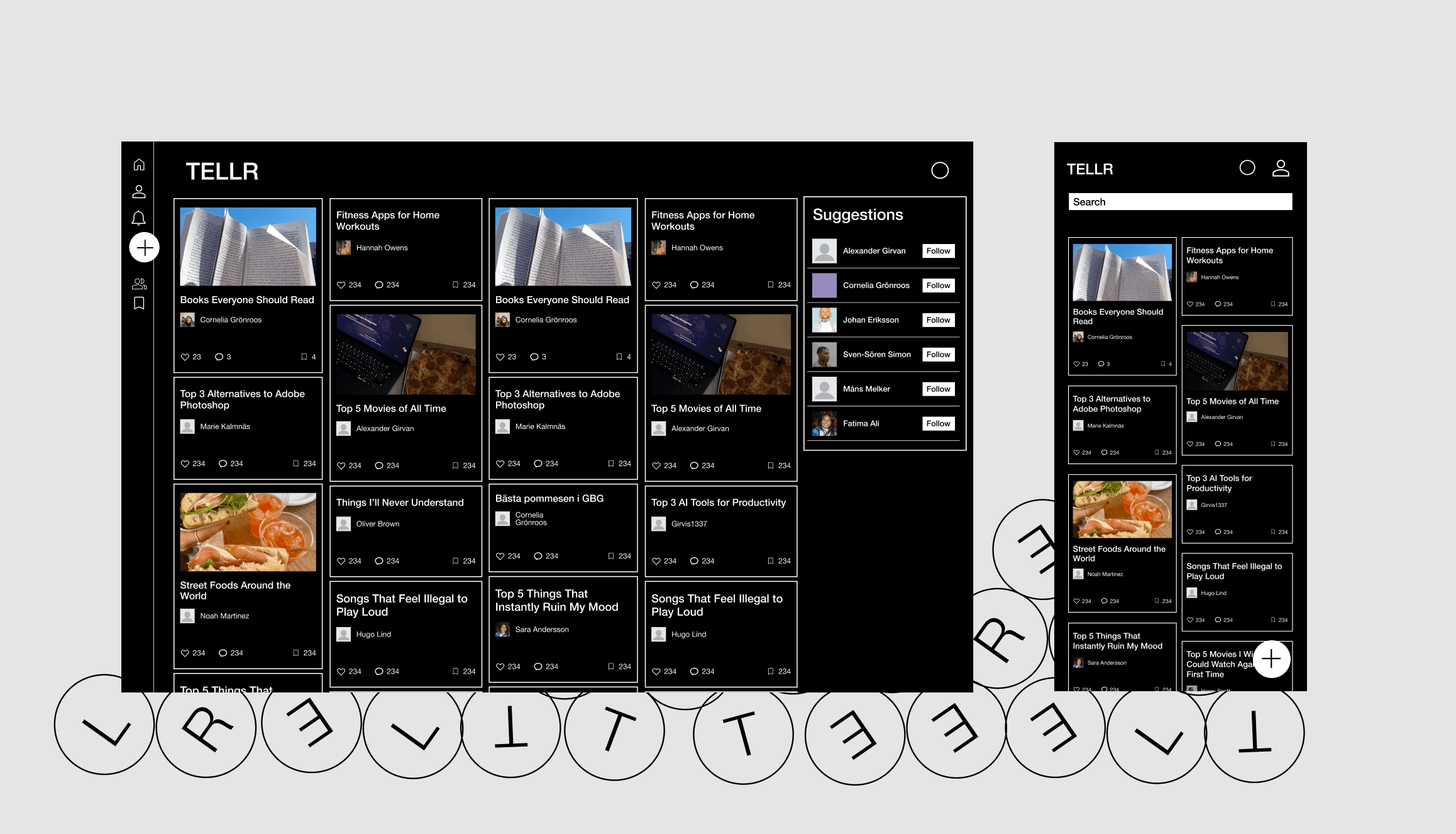 The idea for TELLR was developed by Alexander Girvan, and we worked together to shape and bring the concept to life. I also built the visual foundation of the product through a design system that keeps everything consistent and scalable. The interface is intentionally brutalist and simple, stripping away unnecessary decoration so the content can speak first. TELLR is designed in both dark and light mode to adapt to different contexts, while keeping the same clear identity across both.